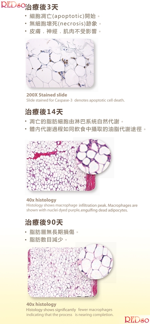 因為脂肪細胞死了~身體會派出清道夫食了死亡的脂肪細胞~再由淋巴系統自然代謝走~